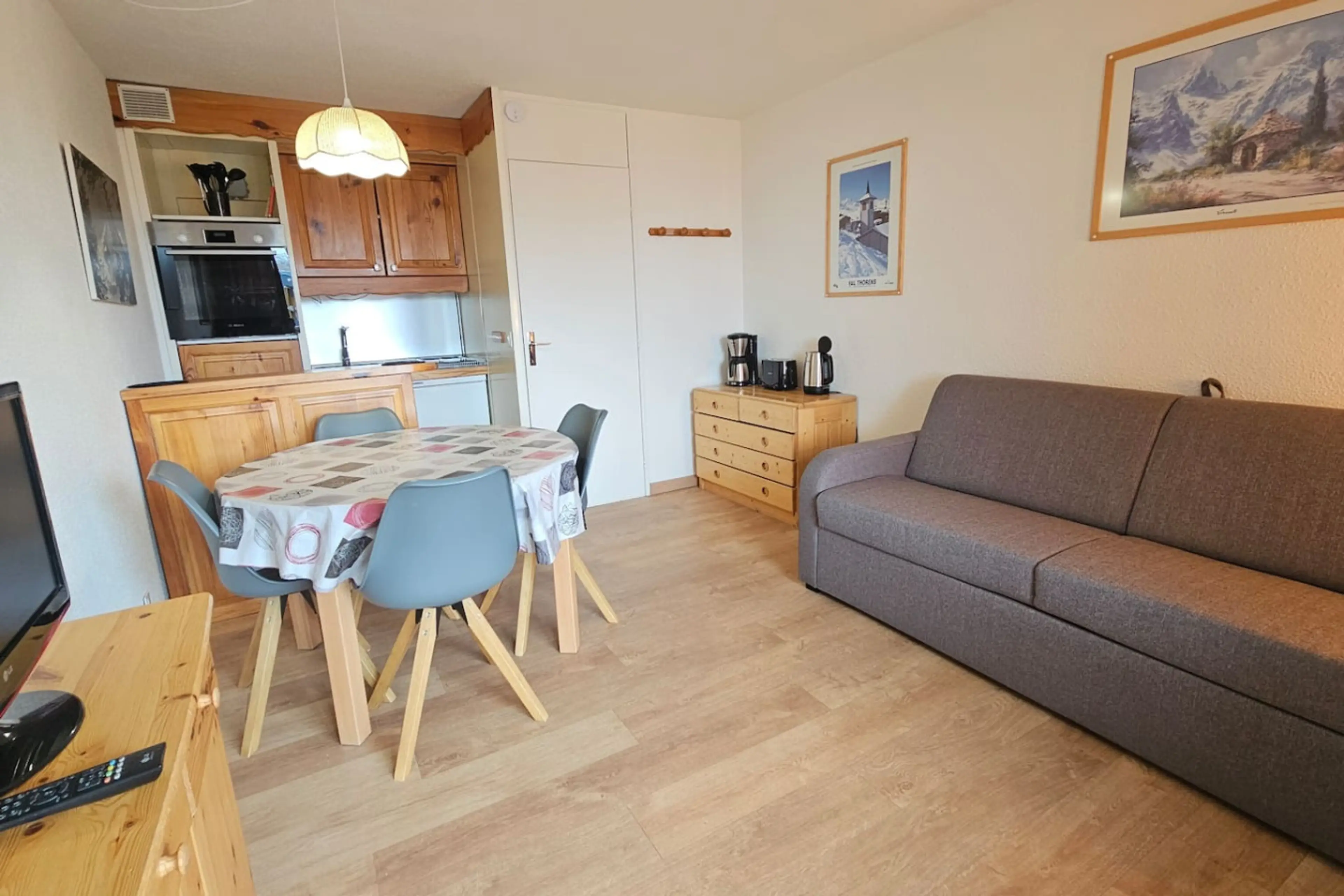 Charming studio in the Roche Blanche Residence, perfectly located in the heart of Val Thorens, just steps from the slopes and resort center. The apartment offers a cozy sofa bed, bunk beds, a fully equipped kitchenette, and stunning mountain views. Enjoy ski-in/ski-out convenience with shops, restau...