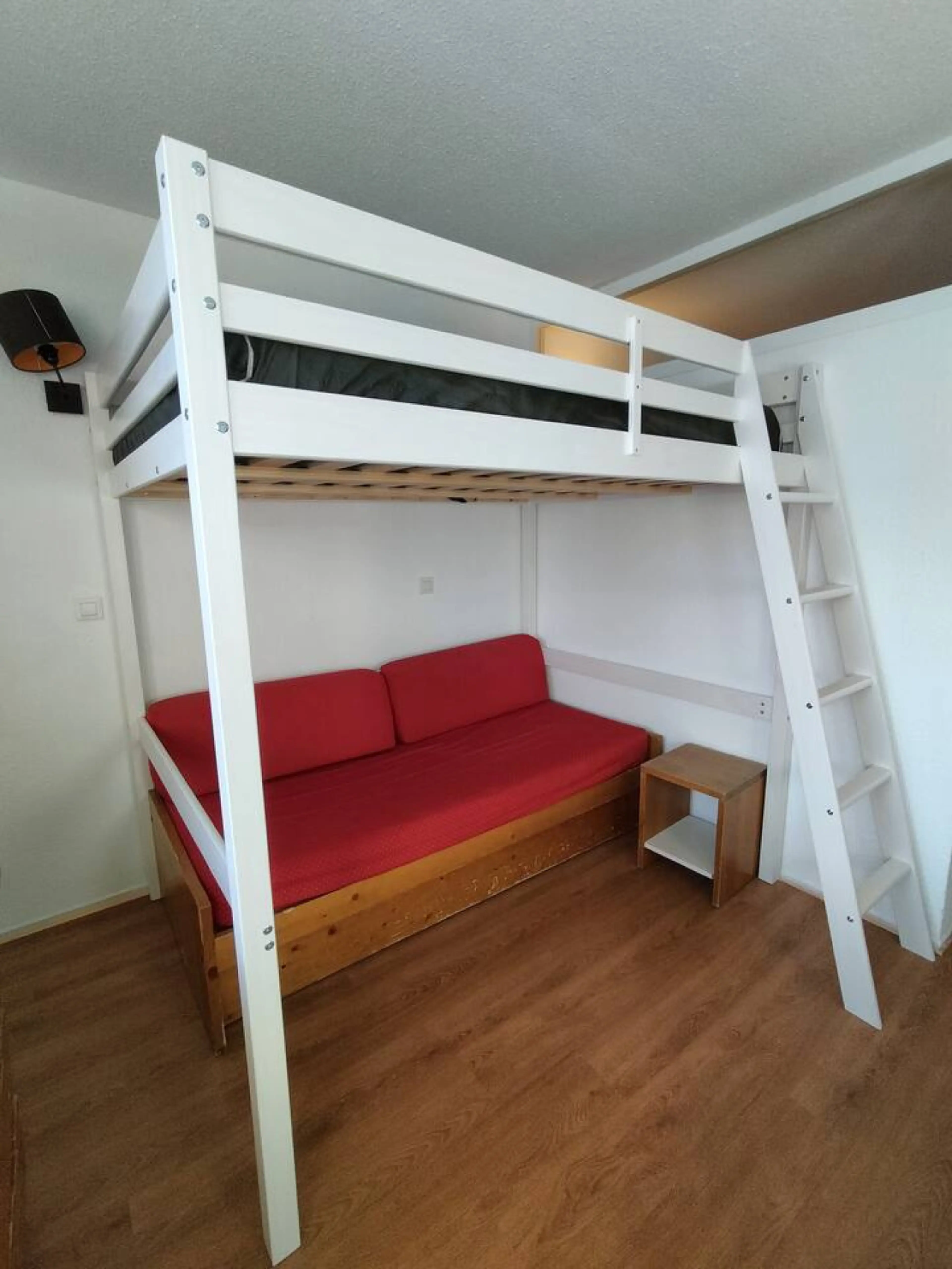Cozy 30m² apartment in the Olympiades Residence, Val Thorens. Features a small cabin bedroom with a double bed, a mezzanine with another double bed, and a sofa bed in the living room With free Wifi. Fully equipped kitchen and great central location close to lifts, shops, and restaurants. Linens and ...