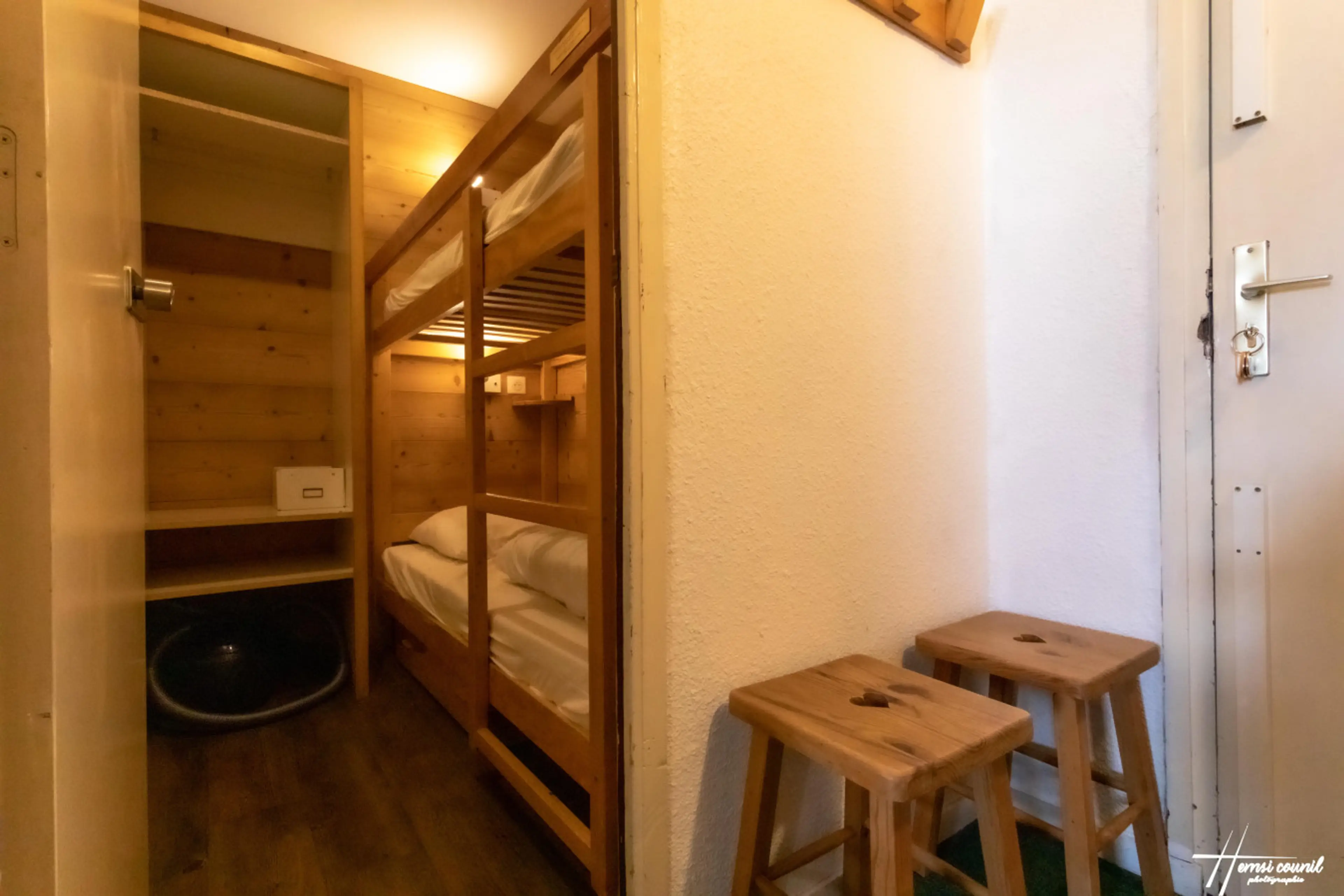 This cozy 2-bedroom apartment is ideally located on Val Thorens’ main street, just steps away from the ski lifts, shops, and restaurants. With free Wifi It features one compact cabin room with a bunk bed, and the main bedroom has been newly upgraded with two brand-new bunk beds, providing comfortabl...